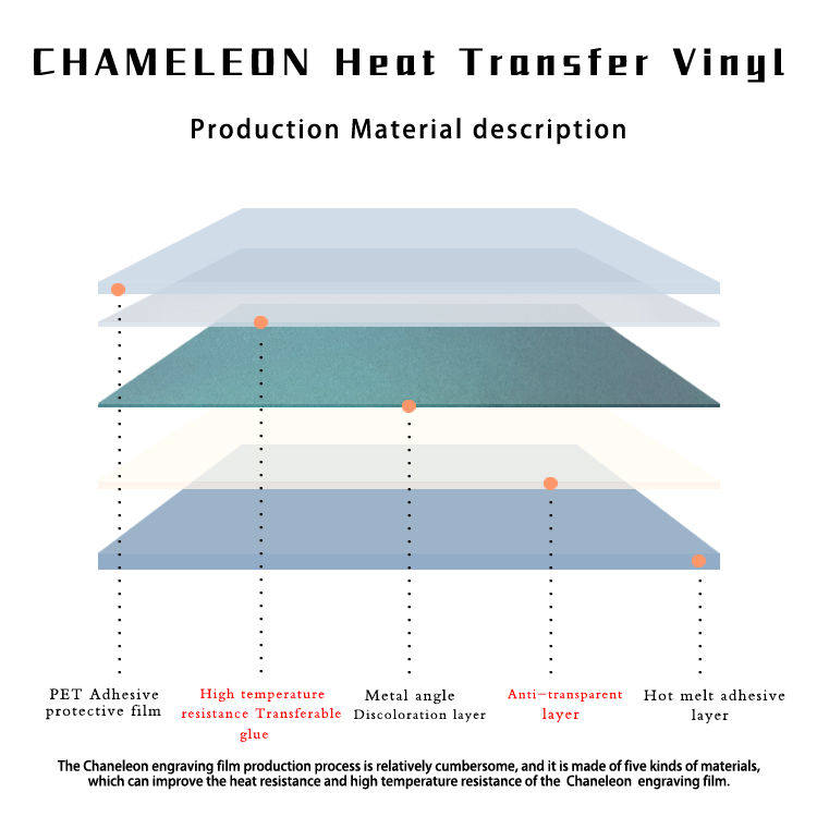1.Chameleon Heat Transfer Vinyl is a relatively novel garment thermal transfer lettering film.
